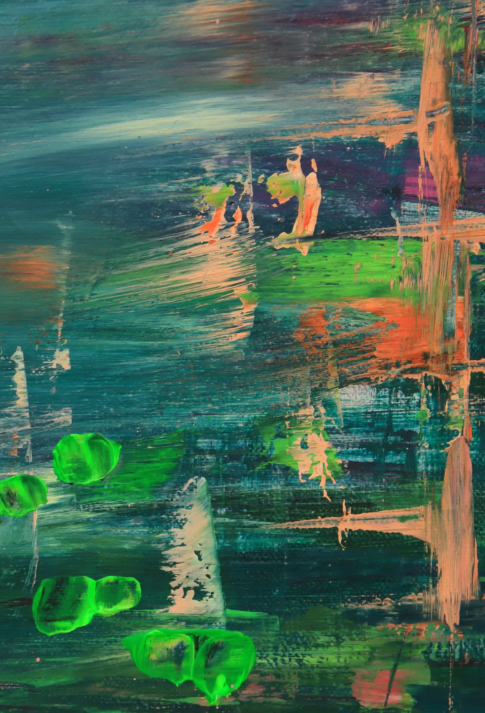 “Rise Up Again” it is full of spontaneous details with clear brush strokes and the addition of a delicate texture with a palette knife. It is full of expression and intense colours.